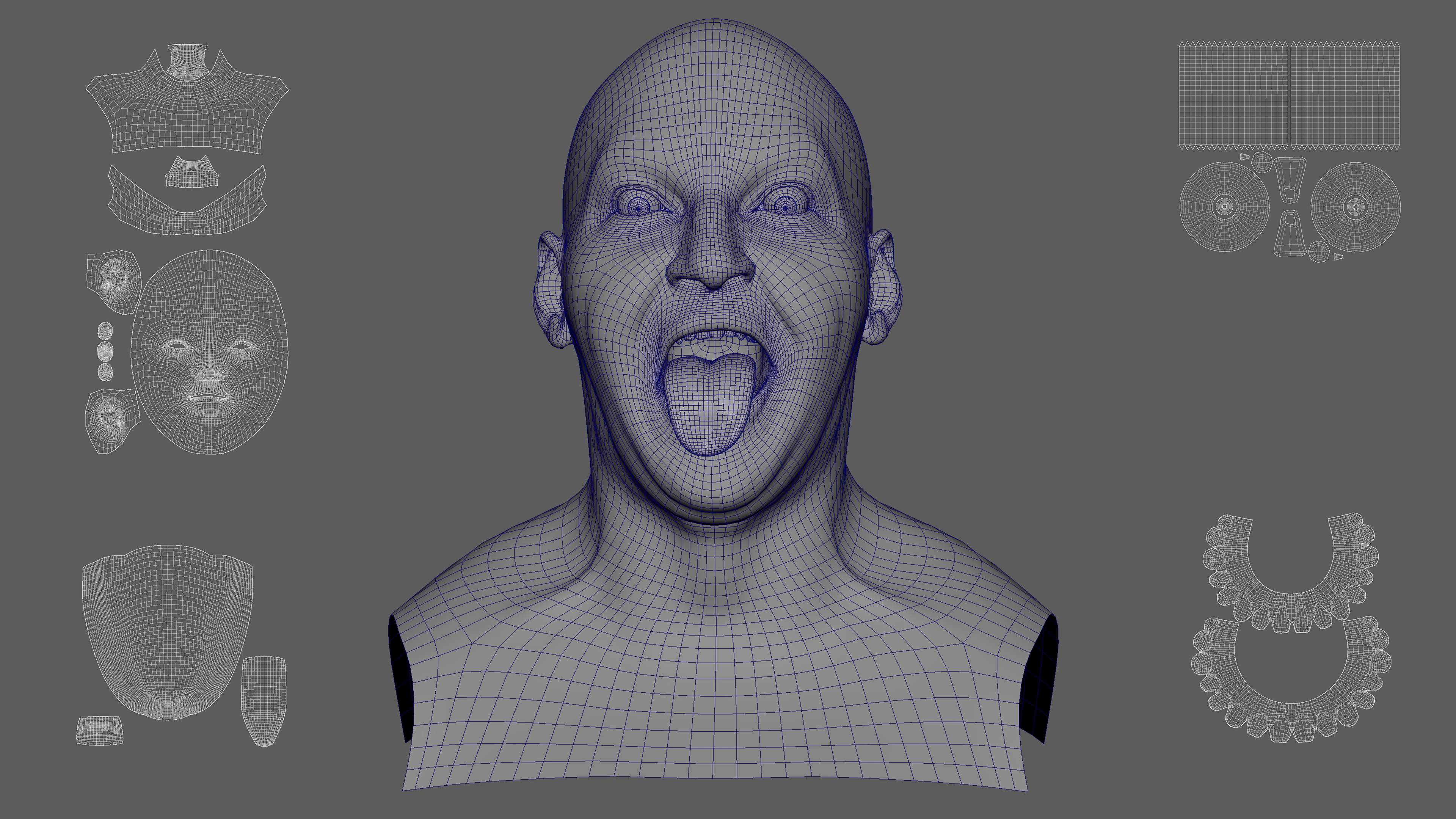 A single 2k by 4k rectangular texture was used for the portrait, granting more resolution for the face.