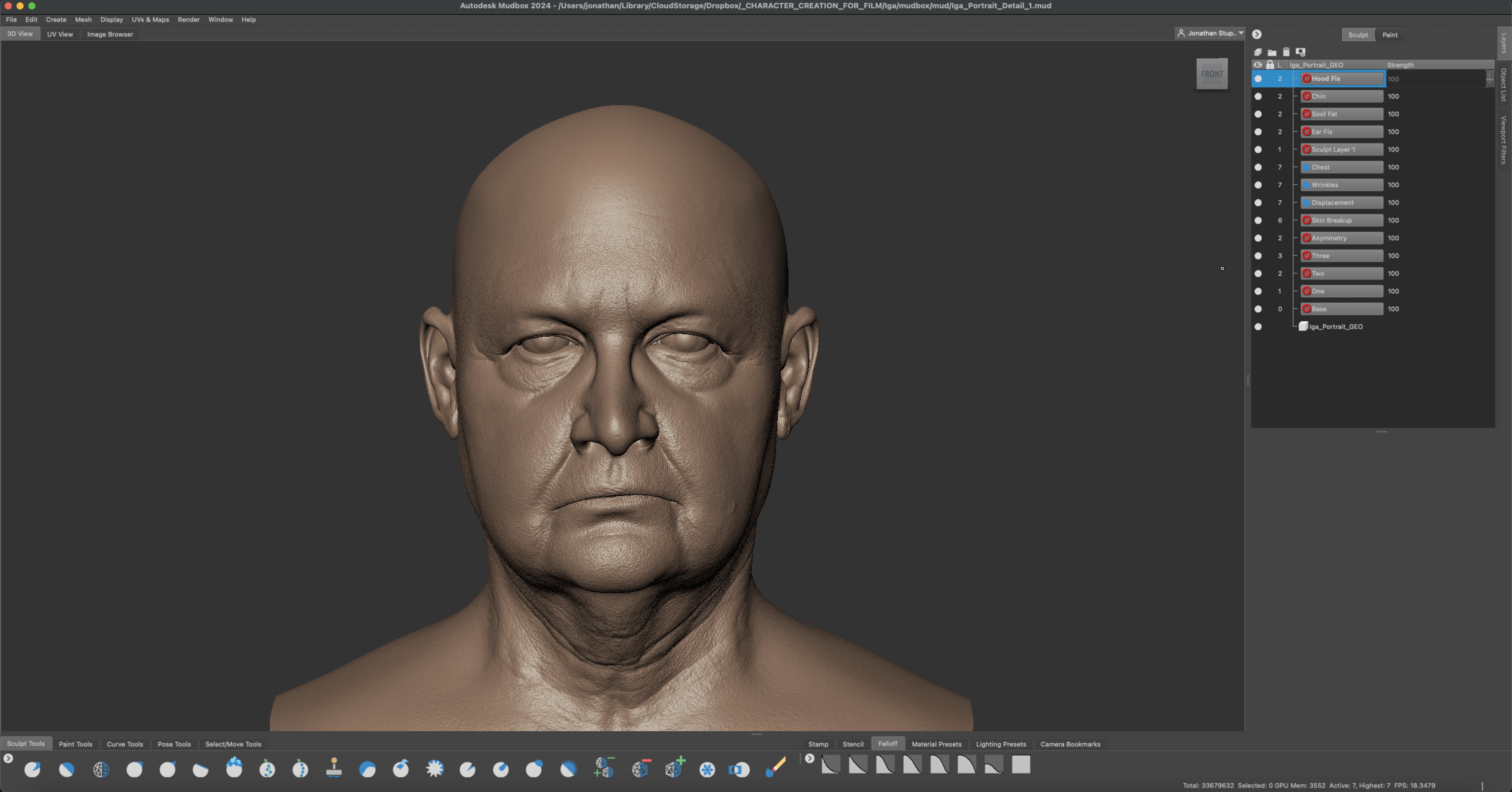 Starting with my base mesh, I then used Houdini to transfer topology from the VFACE mesh to mine. Substance Designer was utilized for texture transferring.