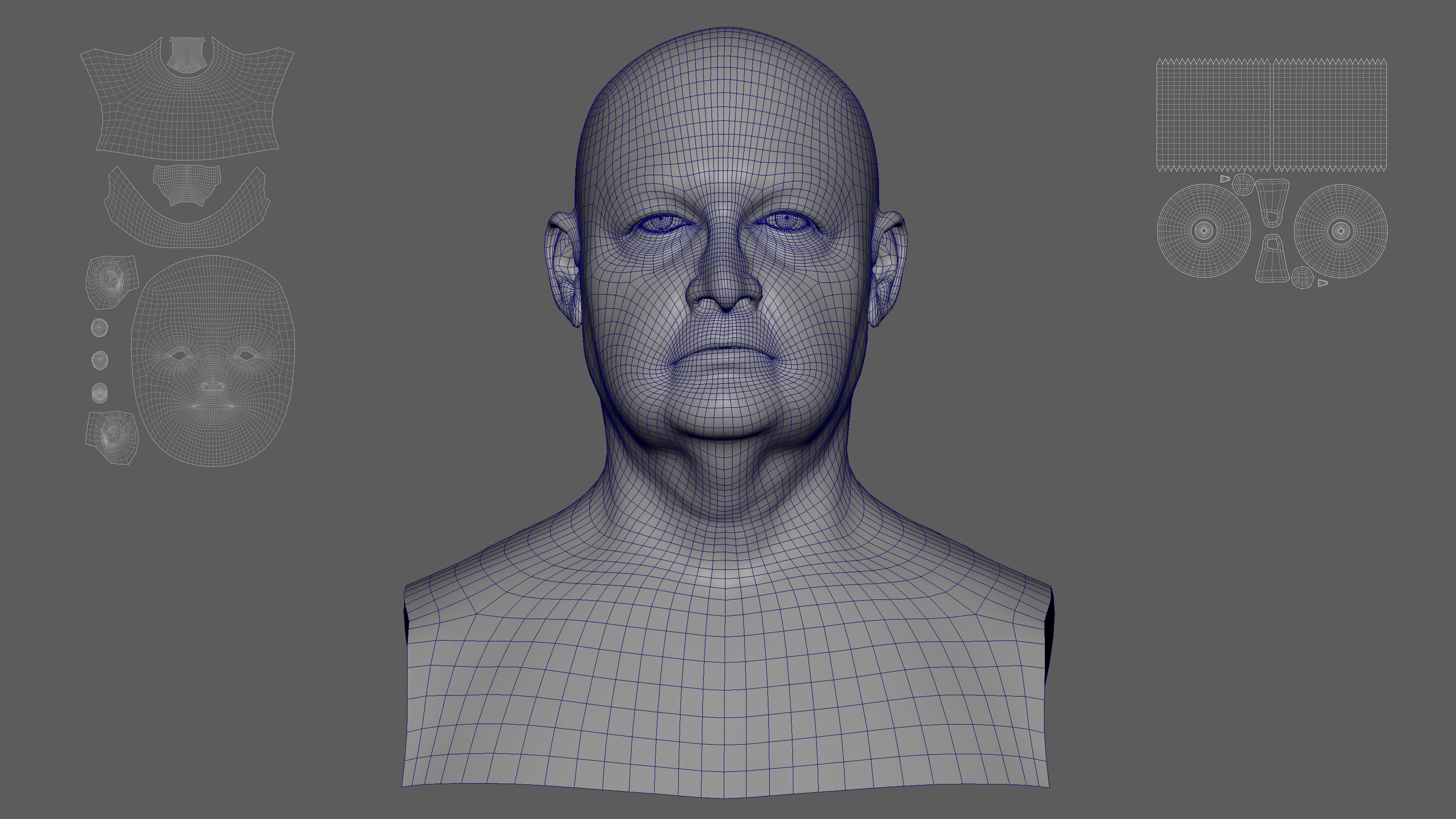 A single 2k by 4k rectangular texture was used for the portrait, granting more resolution for the face.