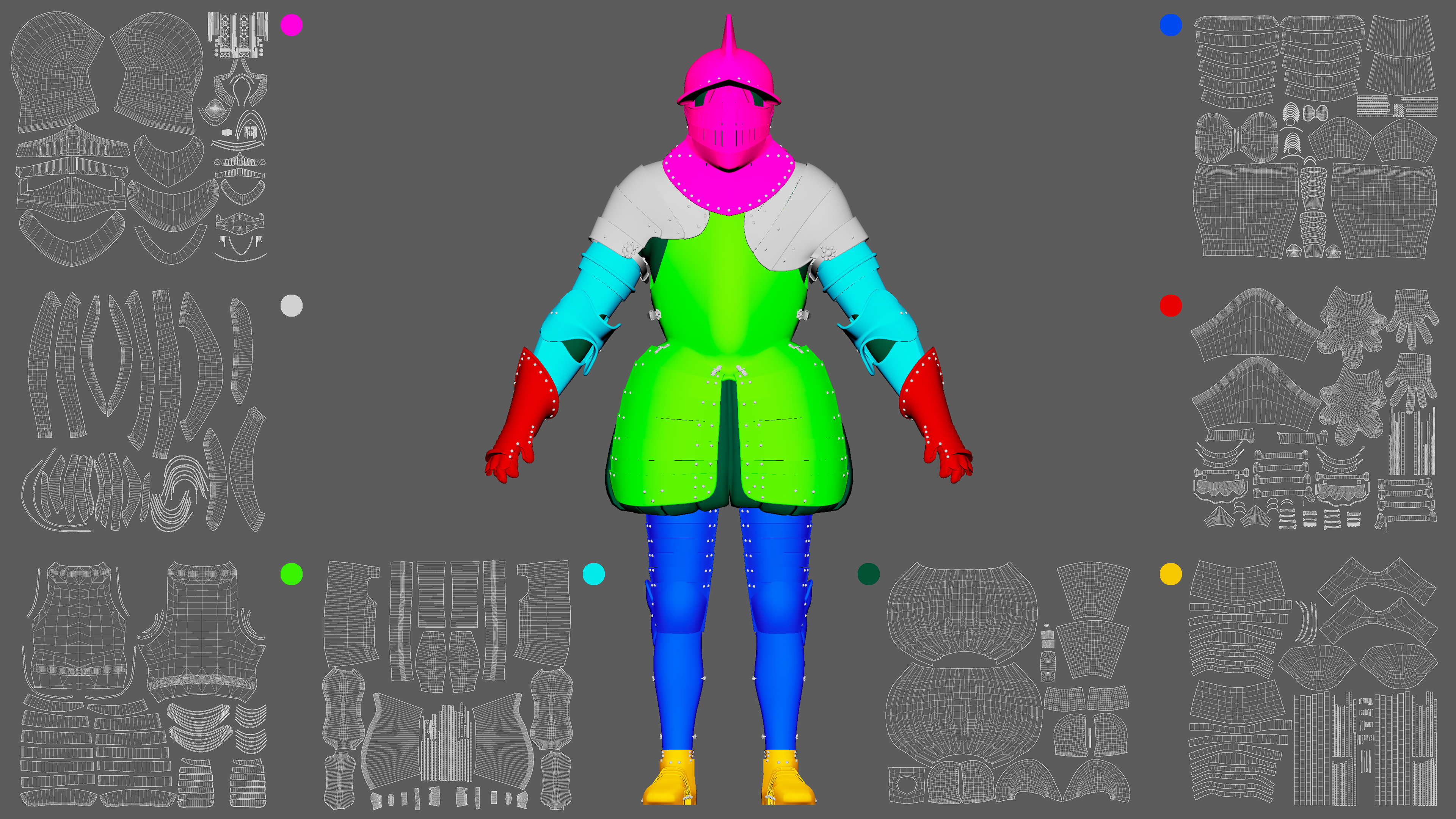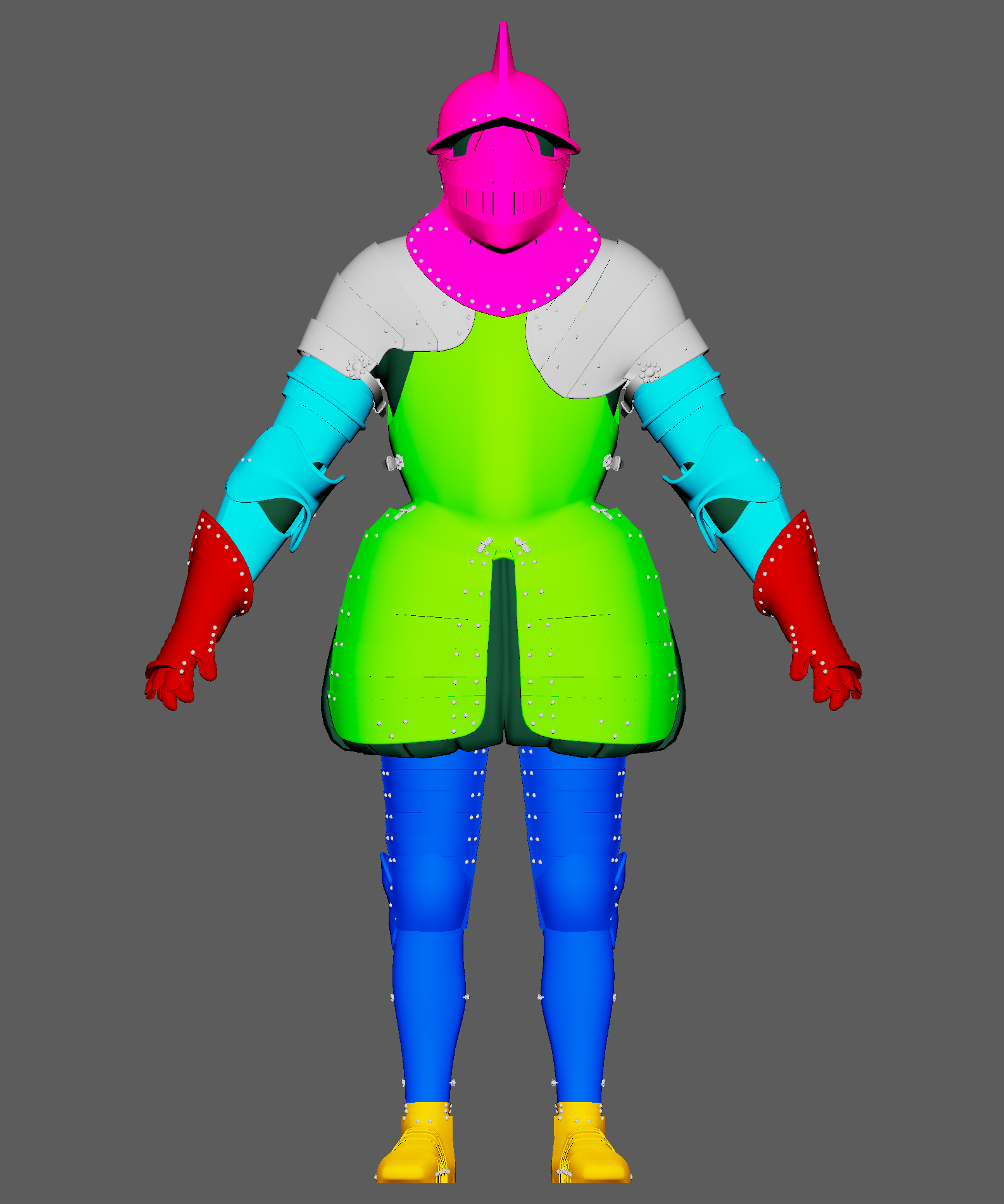 This character was built with modern modularity in mind. Each section of armour can be replaced with variations.