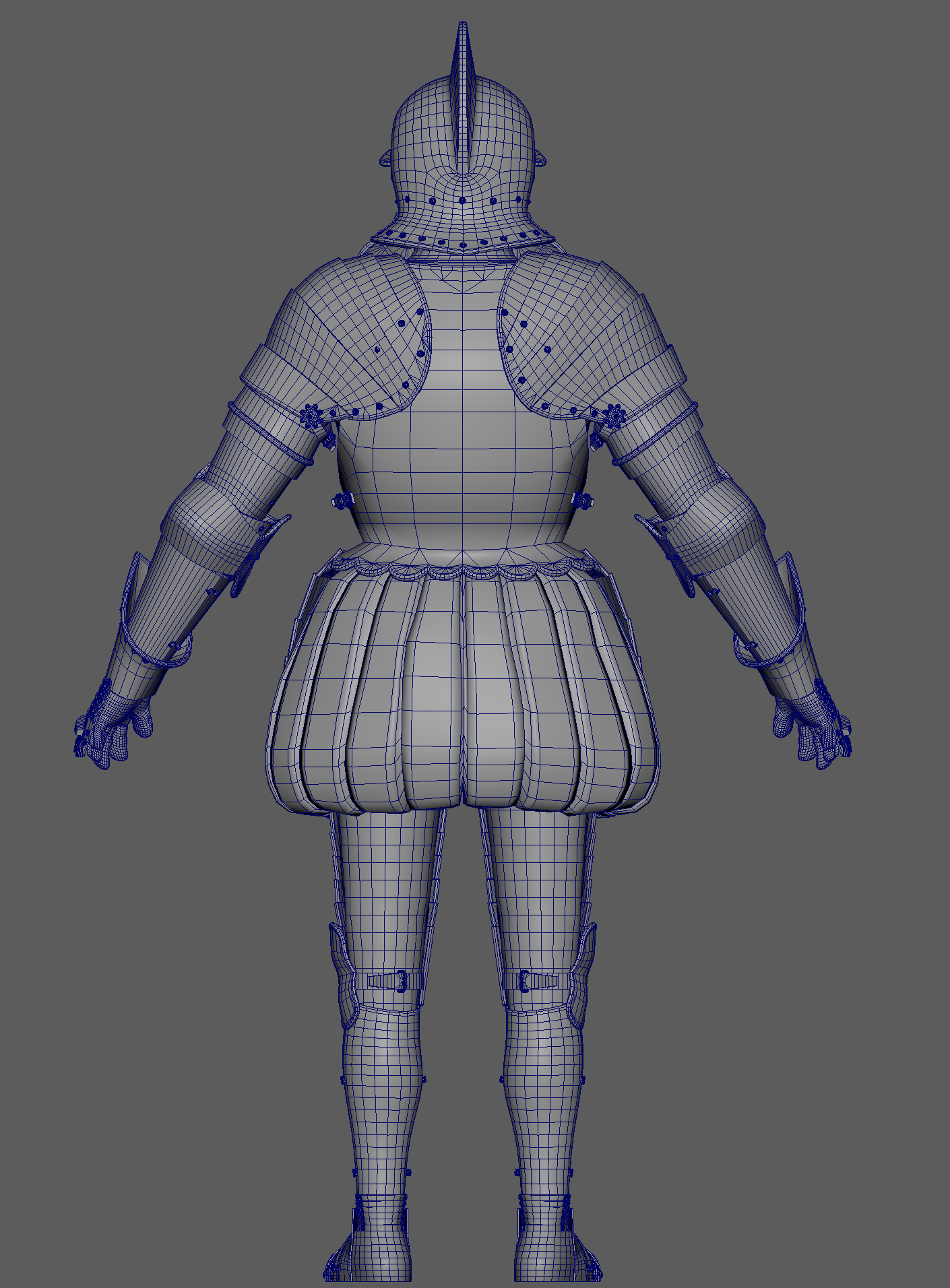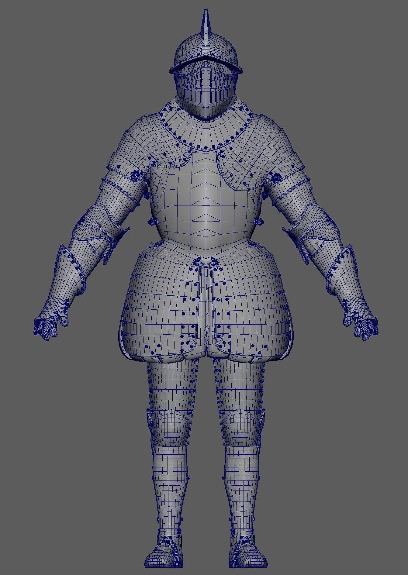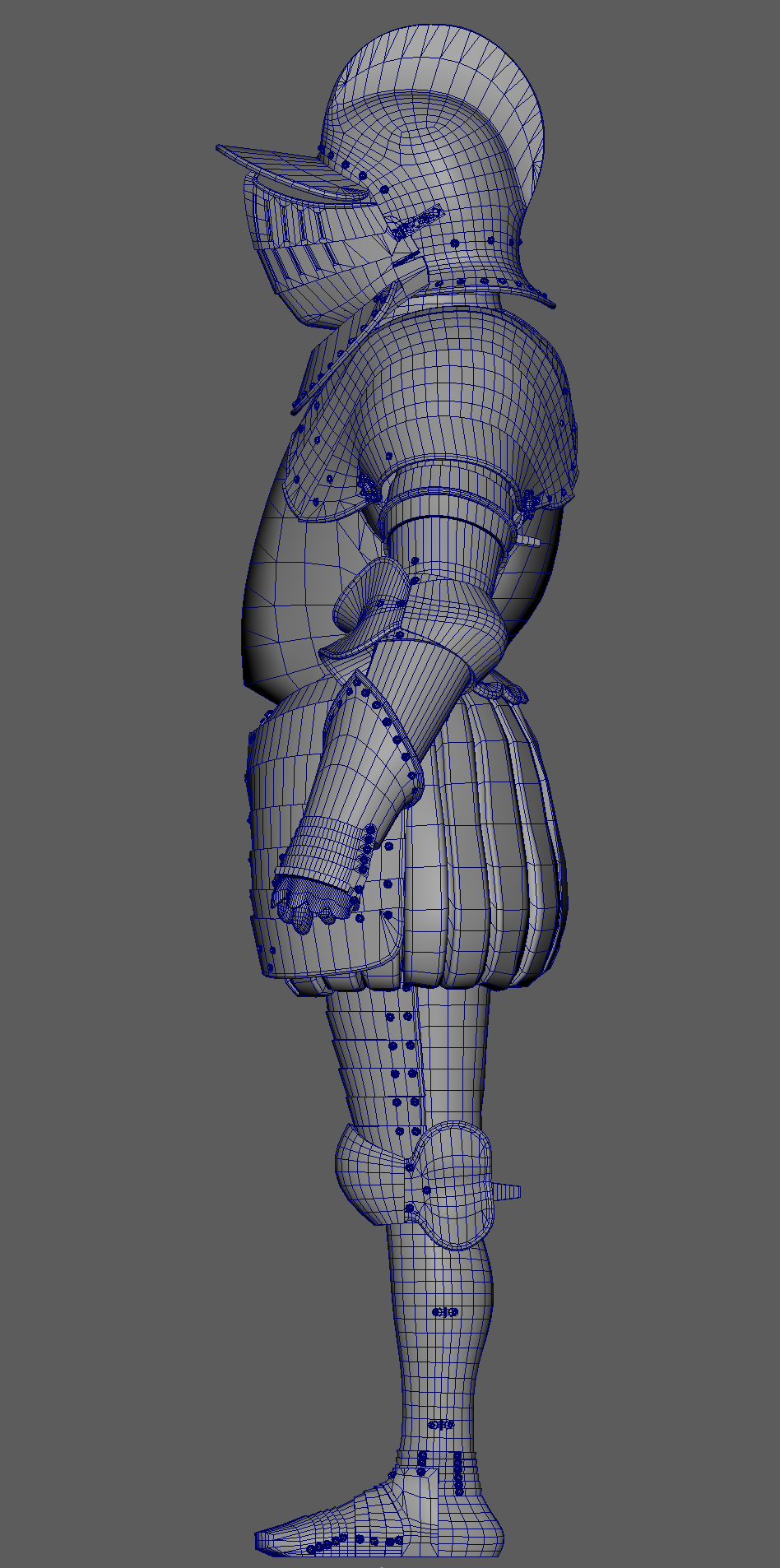The armour was modelled inside Maya, with edge creasing. Base detailing was sculpted inside zBrush and further developed inside Mari. The character was built with modularity in mind, where each section of armour could be replaced and or modified.